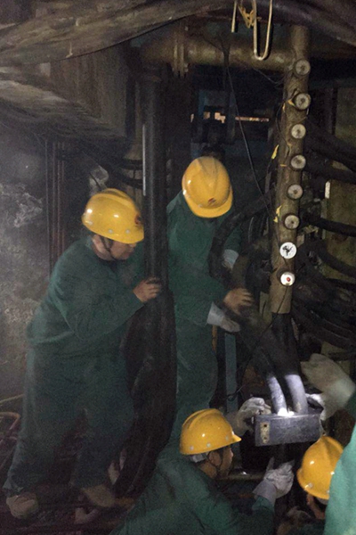 為保證電爐內(nèi)鐵水不浪費(fèi),最大限度減少經(jīng)濟(jì)損失,經(jīng)過簡(jiǎn)短商量后決定立即更換新管。全體員工不顧一天的勞累,緊密配合,參與搶修。電爐下方地方狹窄且滿是積水,大家跪的跪、趴的趴,使盡渾身解數(shù),在昏暗的燈光下把舊管中的電攬線一點(diǎn)點(diǎn)剝離后串進(jìn)新管。晚上7時(shí)水管安裝完畢,電爐重新啟動(dòng),正常運(yùn)行。