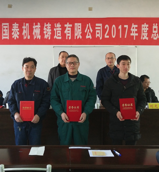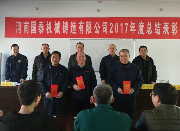 公司總經(jīng)理牛曉宇回顧總結(jié)2017年工作。2017年各項(xiàng)經(jīng)營指標(biāo)達(dá)到且部分超過經(jīng)營大綱要求,經(jīng)營業(yè)績(jī)穩(wěn)中有升。主要是環(huán)保技改工程的實(shí)施、工藝質(zhì)量的提高、管理制度的完善落實(shí)。亮點(diǎn)是水平連鑄環(huán)保技改工程的投產(chǎn)和效益的顯現(xiàn),并由此涌現(xiàn)許多先進(jìn)個(gè)人、集體典型。2018年重點(diǎn)工作是完善鑄造環(huán)保設(shè)施及總體安全規(guī)劃,完成更新更高的生產(chǎn)經(jīng)營目標(biāo),繼續(xù)加強(qiáng)生產(chǎn)經(jīng)營管理、制度管理、員工培訓(xùn),努力開拓市場(chǎng),提高員工福利。