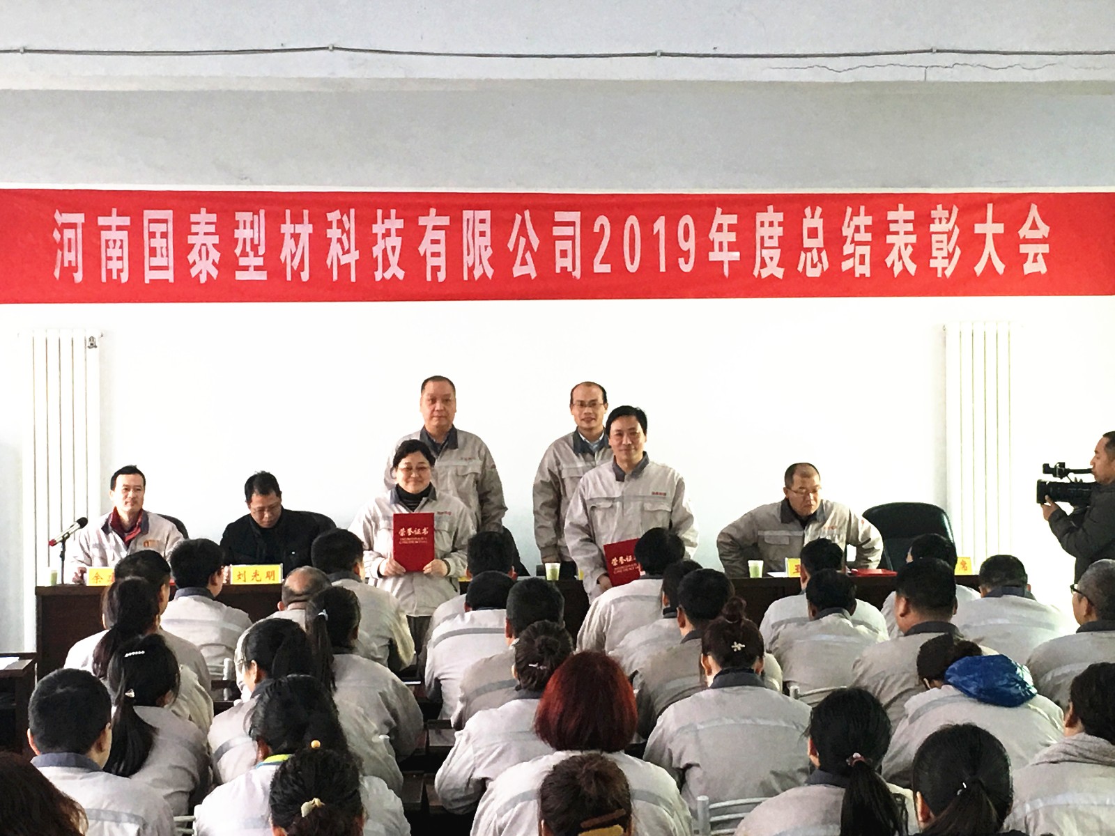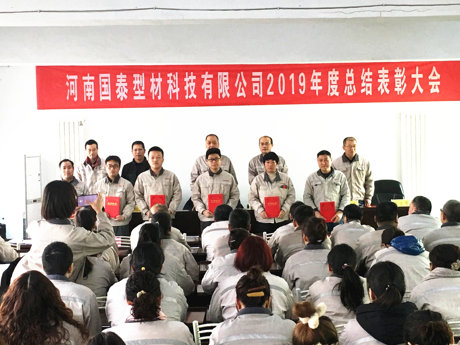 2020年元月18日上午,國泰型材在公司三樓會議室召開2019年度總結(jié)表彰大會。集團公司副總經(jīng)理周為民、企管處副處長劉光明,型材公司經(jīng)理牛曉宇及班子成員、公司中層、先進集體及個人、員工代表共計百余人參加了表彰會。會議由副經(jīng)理余建峰主持。