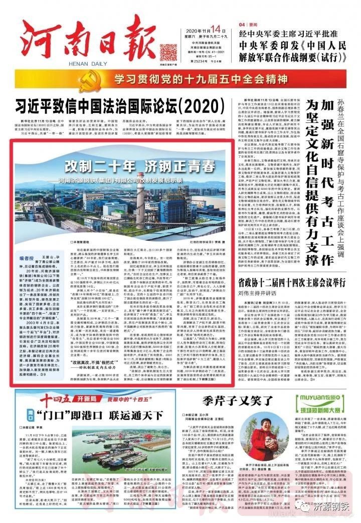 《河南日?qǐng)?bào)》頭版:改制二十年 濟(jì)鋼正青春